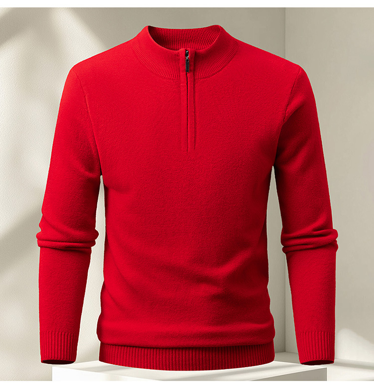 Men's Half-zip Knit Sweater Pullover Solid Color